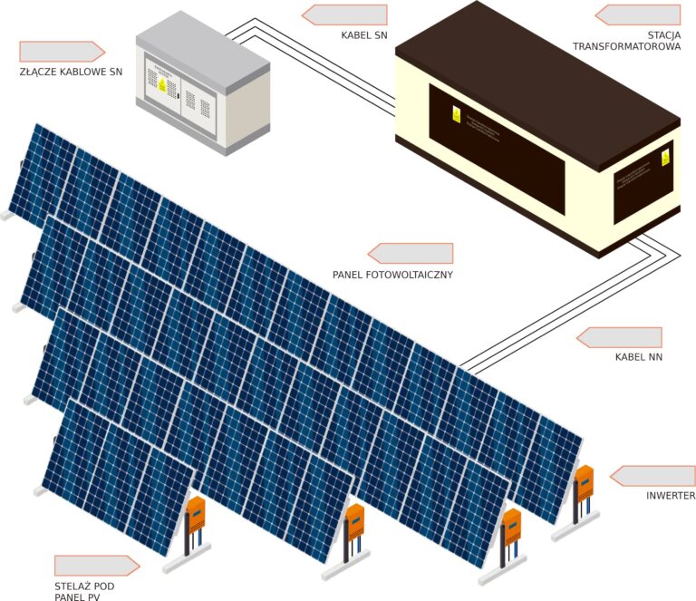 As with every power generation unit, photovoltaic farms require an electrical system connecting it to the electrical power system. Due to a small unit power of such farms and the fact that they are most often located “in a clear field”, an integral element of an electrical system of the farms is free-standing transformer stations in a concrete housing, offered by EG System.