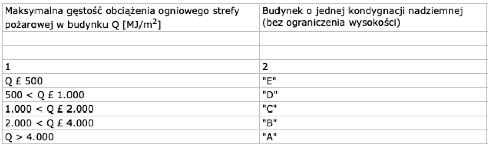 Informacje na temat pojawiającego się tutaj parametru gęstości obciążenia ogniowego można znaleźć w normie PN-B-02852.