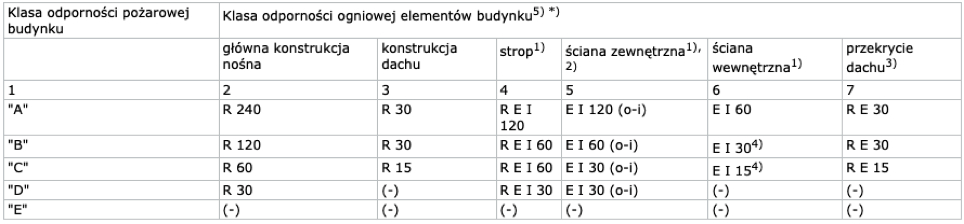 Tabelka 3 – Wymaganą do elementów budynku, odpowiednio do jego klasy odporności pożarowej.